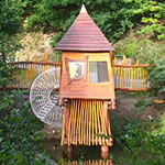 Das insgesamt acht Meter hohe Baumhaus bietet auf drei Plattformen,